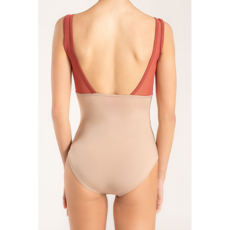 Trägertrikot mit Herzausschnitt - klassisches Mokka trifft auf Bordeauxfarbenes Mesh. Ein versatiler Klassiker, der zu allem passt!